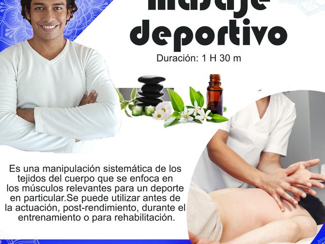 Masaje con manipulaciones y estiramientos de presión media, ideal para descontracturar. Duración 1 hora 30 minutos por sesión.